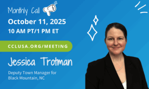 Saturday our speaker is Jessica Trotman, Assistant Town Manager of Black Mountain, North Carolina.